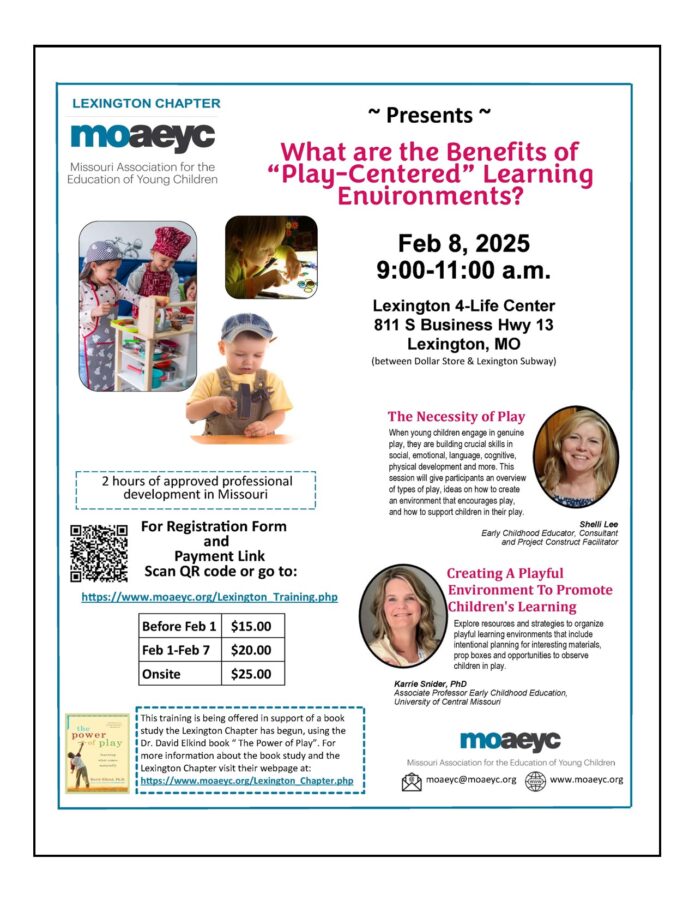 The Lexington Chapter of MOAEYC, formed in July 2024, serves the area of Missouri around Lexington including the following counties – Lafayette, Ray, Caldwell, Livingston, Pettis, and Saline. They look forward to connecting with many providers in the early childhood field, and offering opportunities for trainings, social interactions, collaboration and MORE! Check back often for updates.